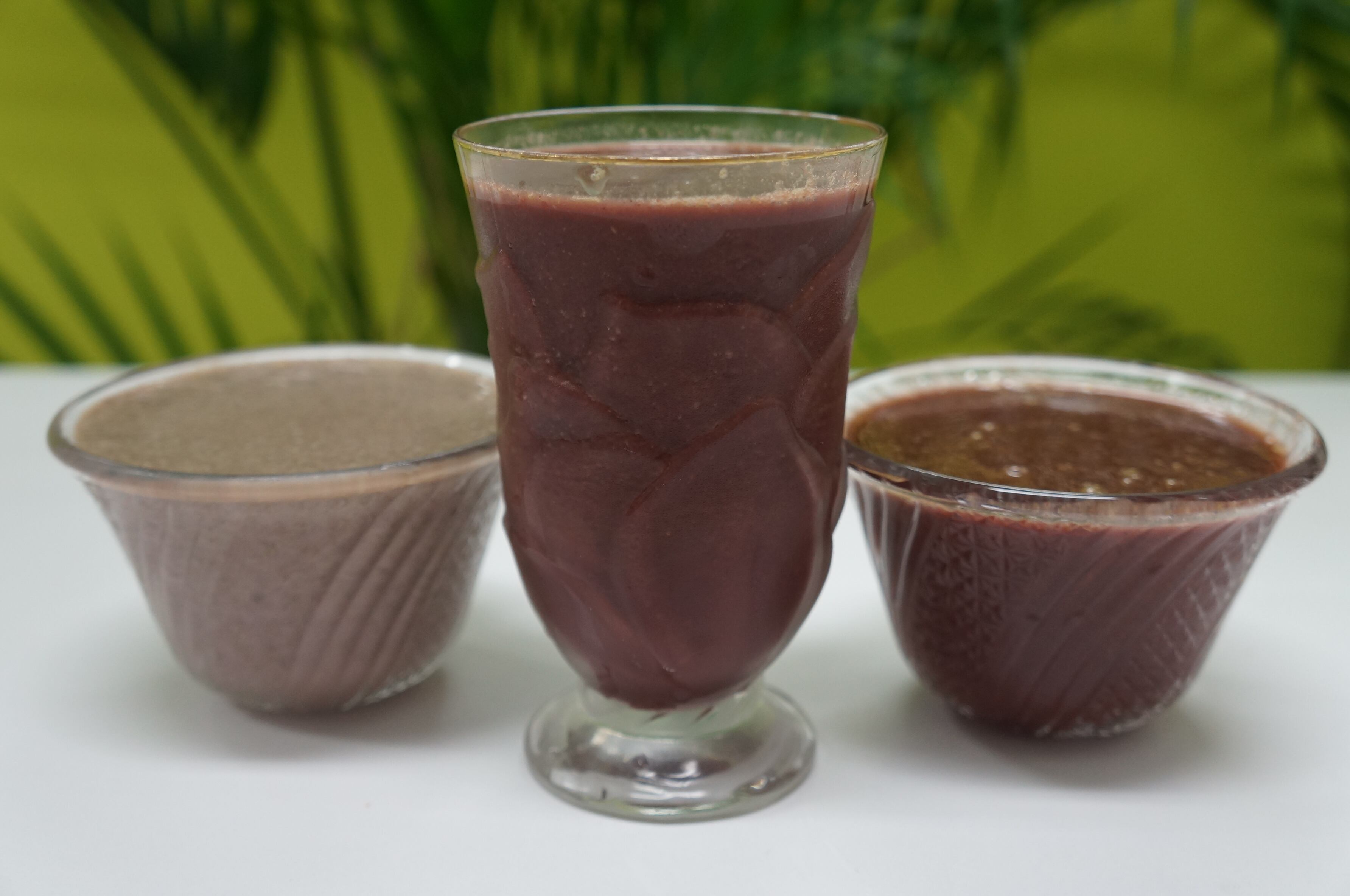 ベース: アサイーピューレ(冷凍パック)100~200g、バナナ 1本、牛乳または豆乳 50~100ml。